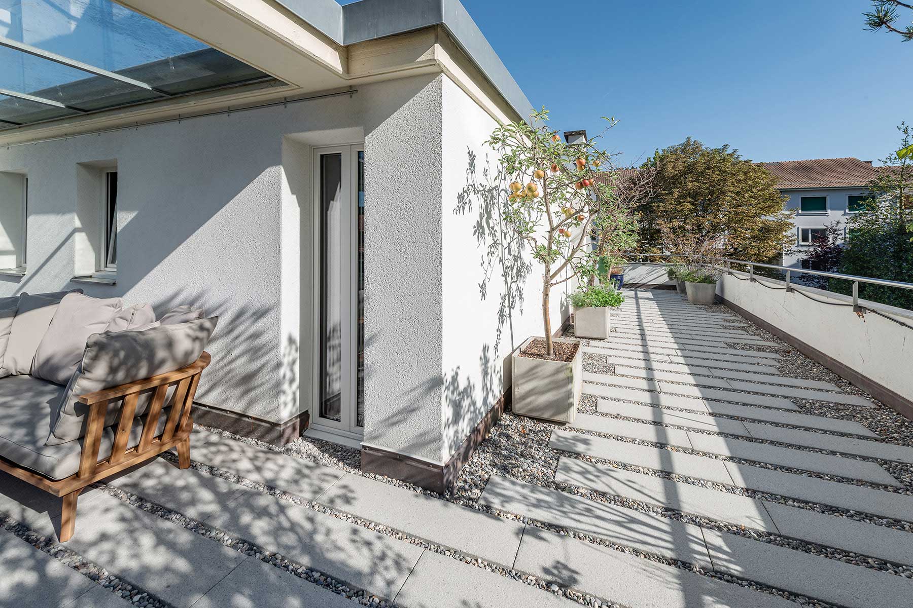 Wohnungsumbau in einem Basler Stadthaus: Mit sorgfältig arrangierten Details und dem umgestalteten Herzstück Terrasse ist eine grüne Oase mitten in der Innenstadt entstanden.