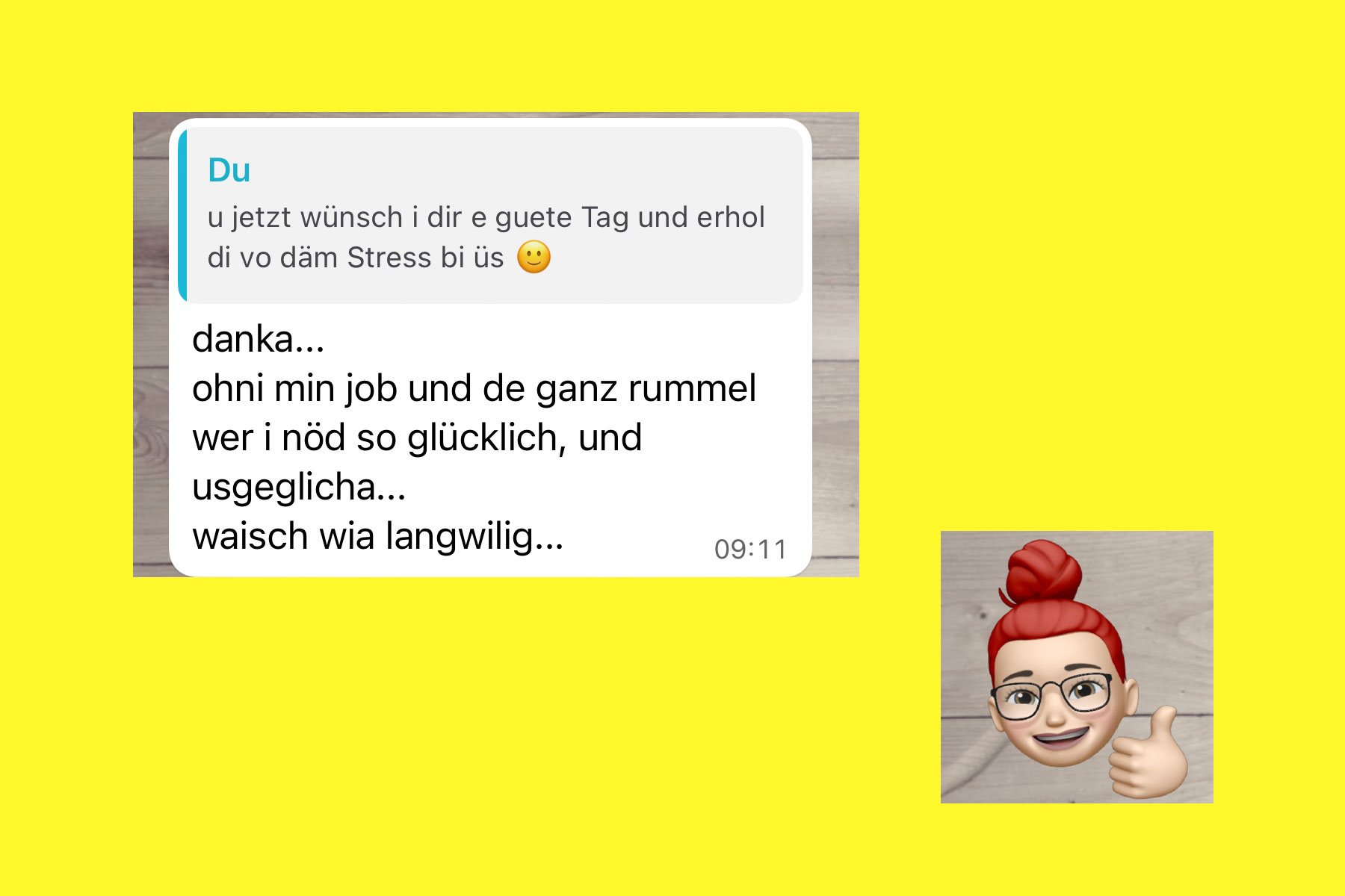 Ihr "Das isch fancy..." zeugte von ihrer modernen und trendbewussten Art. Seraina hatte nicht nur ein Auge für Details in ihrer Arbeit, sondern auch für stilvolle und zeitgemässe Elemente, die sie mit einem Augenzwinkern als "fancy" bezeichnete.